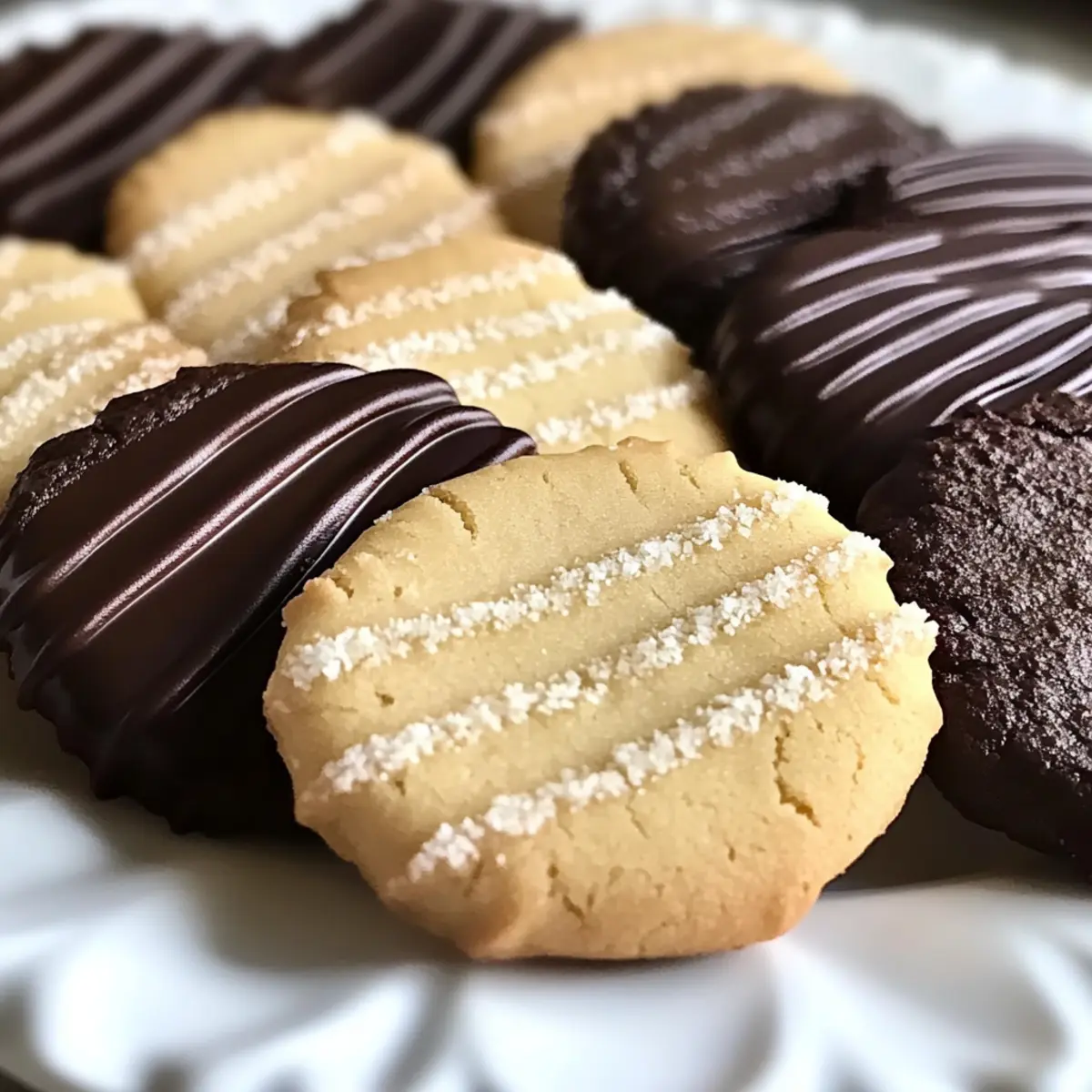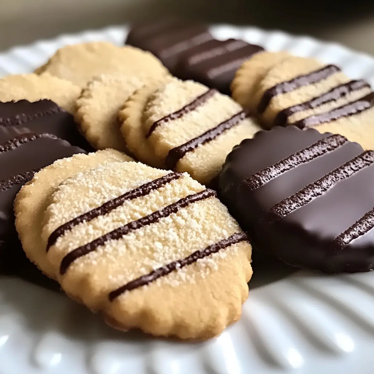 Jump to Recipe Print RecipeAs I took my first bite of these Vegan Danish Butter Cookies, I was instantly reminded of the charming bakeries that line the streets of Copenhagen, each one a treasure waiting to be discovered. With just seven simple ingredients and a preparation time of under 30 minutes, these melt-in-your-mouth delights are perfect for satisfying those pesky sweet cravings while keeping things guilt-free. Imagine serving them at your next coffee gathering or enjoying them solo on a lazy afternoon; they’re a quick and easy way to elevate your snack game. No eggs or dairy means everyone can indulge, and the treat’s light, crispy texture just might make them a new go-to recipe in your kitchen. Curious to see how easy it is to whip these up? Let’s dive into this delightful journey together! Why Are These Cookies So Irresistible? Melt-in-Your-Mouth: These Vegan Danish Butter Cookies offer a delicate texture that simply dissolves in your mouth, making every bite feel like a treat. Quick & Easy: With only seven ingredients and under 30 minutes of prep time, you can satisfy your sweet tooth without the hassle of complicated recipes. Customizable: Add in your favorite nuts or a splash of citrus zest for a personal touch that keeps these cookies exciting every time you bake. Perfect for Sharing: Whether at a coffee gathering or a cozy afternoon tea, these cookies are sure to impress friends and family with their elegant appearance and delightful taste. Guilt-Free Indulgence: Devoid of eggs and dairy, this recipe proves that rich flavors can be enjoyed while sticking to a vegan lifestyle. Don’t forget to pair them with a cup of Garlic Butter Shrimp for a balanced snack experience! Vegan Danish Butter Cookies Ingredients • Here’s everything you need to create these delightful cookies! For the Dough Dairy-Free Butter – Provides a rich, buttery flavor and texture; opt for a high-quality product for the best results. Powdered/Icing Sugar – Adds sweetness and helps create a smooth texture for these Vegan Danish Butter Cookies. Vanilla Extract – Enhances the flavor; using high-quality vanilla elevates the taste of your cookies. All-Purpose/Plain Flour – Forms the structure of the cookies; you can use gluten-free flour for an alternative. Cornflour/Cornstarch – Lightens the texture, achieving that melt-in-your-mouth quality everyone loves. Dairy-Free Milk – Adjust as needed to achieve the desired dough consistency for piping. For Topping Caster Sugar – Optional for sprinkling on top, adding sweetness and a lovely crunch. Dairy-Free Dark Chocolate – Used for dipping; ensure it’s dairy-free to keep the cookies vegan. Now that you have the ingredients, get ready to immerse yourself in a delightful cookie-making adventure! Step‑by‑Step Instructions for Vegan Danish Butter Cookies Step 1: Preheat the Oven Begin by preheating your oven to 180°C (fan) and line a baking tray with greaseproof paper. This step ensures your Vegan Danish Butter Cookies will bake evenly and releases easily once done. Allow the oven to reach the desired temperature while you prepare the dough, so everything flows smoothly. Step 2: Cream the Butter and Sugar In a large mixing bowl, combine softened dairy-free butter, powdered sugar, and vanilla extract. Using an electric mixer, cream these ingredients on medium speed for about 2-3 minutes until the mixture appears light and fluffy. This process is crucial for achieving that melt-in-your-mouth texture in your Vegan Danish Butter Cookies, so take your time here. Step 3: Combine Dry Ingredients Sift in the all-purpose flour and cornflour into the creamed mixture. Gently fold these dry ingredients together until just combined; be careful not to overmix, as this can lead to denser cookies. If needed, gradually add dairy-free milk until you achieve a soft, pipeable dough, ensuring that all components are well integrated. Step 4: Pipe the Cookie Shapes Transfer the dough into a piping bag fitted with a star tip for an elegant design. Pipe desired shapes onto the prepared baking tray, ensuring they are spaced about an inch apart to allow for spreading. This step is where you can unleash your creativity with the Vegan Danish Butter Cookies, aiming for uniformity in size to ensure even baking. Step 5: Add Sweet Topping If desired, sprinkle a pinch of caster sugar over each piped cookie for an extra touch of sweetness and a delightful crunch. This step is optional, but it enhances both the flavor and the visual appeal, making your cookies even more irresistible and inviting. Step 6: Bake the Cookies Carefully place the tray in the preheated oven and bake for 10-12 minutes or until the edges are lightly golden. Keep an eye on your Vegan Danish Butter Cookies as they bake; they might look soft when you take them out, but they will firm up as they cool. Step 7: Cool the Cookies Remove the tray from the oven and allow the cookies to cool on the tray for a few minutes. This cooling time is essential to ensure the textures develop perfectly. Once they are firm enough to handle, transfer the cookies to a wire rack to cool completely—this will prevent them from becoming soggy. Step 8: Melt the Chocolate While the cookies cool, melt the dairy-free dark chocolate in a microwave-safe bowl or over a double boiler. If using the microwave, heat in short bursts of 15-20 seconds, stirring in between until smooth. This silky chocolate dip adds a luxurious element to your Vegan Danish Butter Cookies, enhancing every bite with rich flavor. Step 9: Dip the Cookies Once the cookies are completely cooled, dip each one halfway into the melted chocolate. Place them on a lined tray to chill and allow the chocolate to set. This final touch transforms your Vegan Danish Butter Cookies into an indulgent treat, making them perfect for sharing—and enjoying yourself! Make Ahead Options These Melt-in-Your-Mouth Vegan Danish Butter Cookies are perfect for meal prep, saving you ti