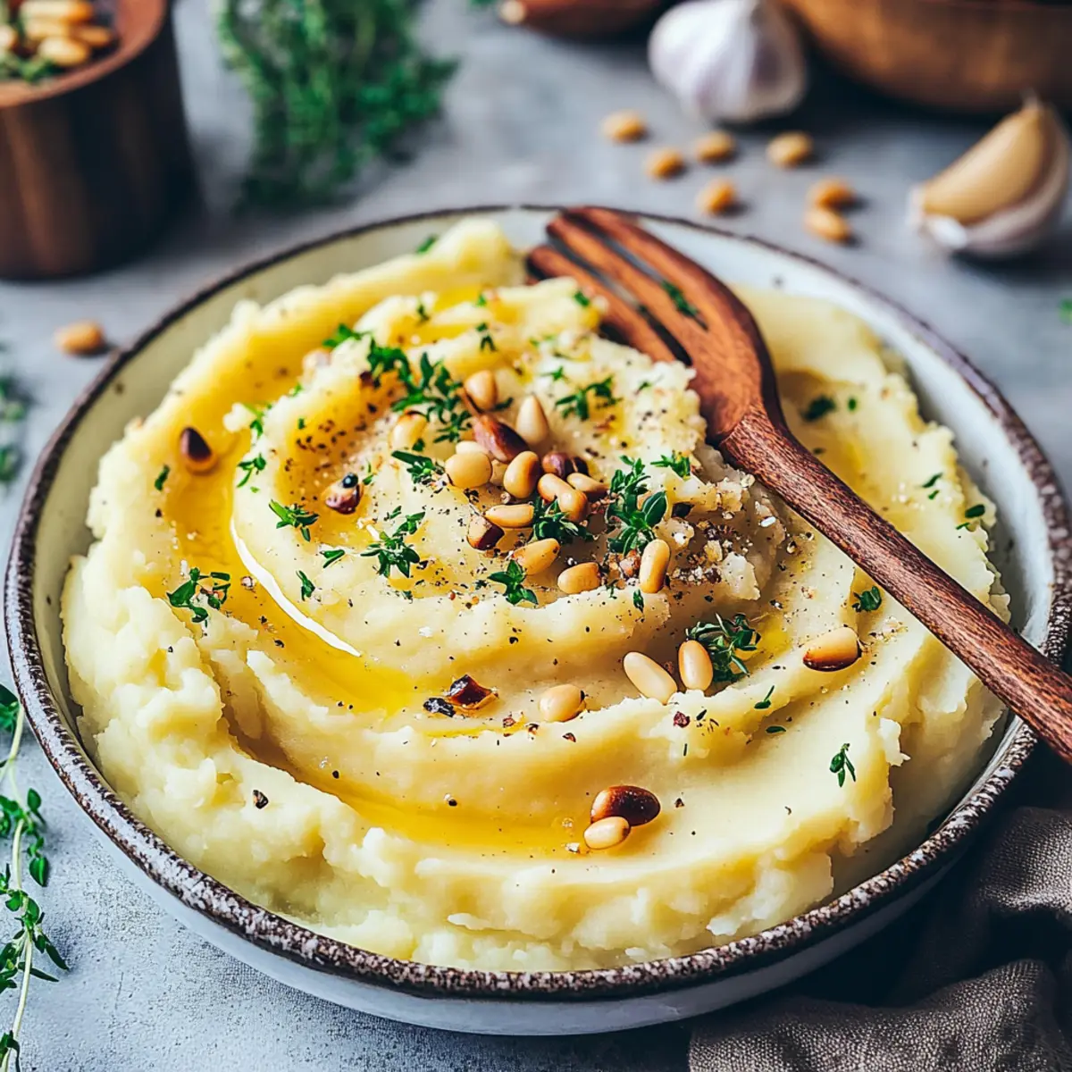 Jump to Recipe Print RecipeThe aroma of roasting garlic filled my kitchen as I set out to create the ultimate holiday side dish: Creamy Vegan Mashed Potatoes. This plant-based delight boasts a rich, velvety texture that rivals even the most indulgent traditional recipes. What’s truly magical about these mashed potatoes is how quick and easy they are to prepare, making them the ideal addition to any festive gathering. Plus, being gluten-free and dairy-free means everyone can savor this comforting dish without a second thought. Imagine the smiles around your dinner table as people savor each delightful bite—who’s ready to elevate their holiday feast? Why are These Mashed Potatoes Irresistible? Creamy Texture: Each bite of these Vegan Mashed Potatoes is a heavenly experience! The combination of Yukon Gold potatoes and roasted garlic creates an exceptionally smooth and velvety mouthfeel, ensuring a satisfying and light dish. Ridiculously Easy: You’ll love how quickly these come together! With just a few simple ingredients and minimal prep, you’ll have this delicious side dish ready in no time—perfect for busy holiday planning. All-Inclusive: No need to worry about dietary restrictions; this recipe is gluten-free and dairy-free, making it a hit at any gathering! Pair it with your favorite vegan gravy or Shrimp Over Mashed for the ultimate meal. Flavors That Wow: The roasted garlic adds a depth of flavor that’s simply divine. Simple, yet impressive, these mashed potatoes will have everyone asking for the recipe! Versatile Delight: Not just for holidays! These mashed potatoes can be served year-round and can easily adapt to your meal needs; try adding green veggies or switching the garlic for shallots for a unique twist. Vegan Mashed Potatoes Ingredients • Creamy, delicious ingredients to elevate your dish! For the Mashed Potatoes Potatoes – Yukon Gold or Russet potatoes work best for a rich, creamy texture. Olive Oil – Adds richness; feel free to drizzle a little more on top for extra flavor. Garlic – Roasted garlic enhances the dish with a savory depth; don’t skip this step! Vegan Butter – Provides creaminess; you can also use margarine for an oil-free option. Non-Dairy Milk – Adjusts the creaminess to your liking; almond or soy milk are great choices. Salt & Black Pepper – Key for balancing flavors; season generously to taste. For Garnishing (optional) Fresh Herbs – Parsley or thyme not only add color but also a burst of aroma! Pine Nuts – Toasted pine nuts offer a delightful crunch and nutty flavor, perfect as a topping. Step‑by‑Step Instructions for Creamy Vegan Mashed Potatoes Step 1: Prep Potatoes Begin by peeling and chopping about 2 pounds of Yukon Gold or Russet potatoes into equal-sized chunks. Rinse the potatoes with cold water to remove excess starch, which helps in achieving a creamier texture in your Vegan Mashed Potatoes. Set them aside while you prepare the next steps. Step 2: Cook Potatoes Place the chopped potatoes into a large pot and cover them with cold, salted water, ensuring the water level is about an inch above the potatoes. Bring the pot to a rapid boil over high heat, then reduce to medium heat and simmer for 15–20 minutes, or until a fork easily pierces them. Drain the potatoes in a colander, allowing any excess moisture to escape. Step 3: Sauté Garlic While the potatoes are cooking, take 4-5 cloves of garlic and mince them finely. In a small skillet, heat 2 tablespoons of olive oil over medium heat. Add the minced garlic and sauté for about 1 minute, just until fragrant and golden, being careful not to burn it. Turn off the heat and set the garlic aside to infuse its flavor. Step 4: Mash Potatoes After draining the potatoes, let them sit in the pot for 1-2 minutes to steam dry, ensuring they’re not watery. Use a potato ricer or masher to mash them until they are smooth and fluffy in a large mixing bowl. The goal is to create a creamy base for your Vegan Mashed Potatoes, free of lumps. Step 5: Combine Ingredients To the bowl of mashed potatoes, add the sautéed garlic, 2 tablespoons of vegan butter, and about ½ cup of non-dairy milk (adjust to your desired creaminess). Season generously with salt and black pepper. Stir everything gently until combined and creamy, being careful not to over-mix, as this can make the texture gluey. Step 6: Serve Transfer your delightful Vegan Mashed Potatoes to a serving dish. Drizzle a little extra olive oil on top for added richness if desired. For the finishing touch, garnish with freshly chopped herbs like parsley or thyme and sprinkle with toasted pine nuts for a delightful crunch. Serve warm and watch everyone enjoy this comforting side dish! What to Serve with Creamy Vegan Mashed Potatoes? Elevate your holiday meal with these delightful vegan sides that perfectly complement the rich, buttery goodness of your mashed potatoes. Vegan Meatloaf: A hearty and flavorful pairing that brings a protein-rich element to your plate, ensuring a satisfying meal for everyone. Savory Mushroom Gravy: Rich and saucy, this gravy adds depth to the creamy mashed potatoes, making each bite a comforting experience. Roasted Seasonal Vegetables: Colorful, caramelized veggies add sweetness and texture, creating a beautiful balance alongside the smooth potatoes. Crisp Green Salad: A light, zesty salad with fresh greens and a tangy vinaigrette cuts through the creaminess, refreshing your palate. Stuffed Acorn Squash: This sweet-and-savory dish brings an autumnal charm, pairing wonderfully with the comforting mashed potatoes for a seasonal feast. Classic Cornbread: Sweet and tender, cornbread adds a delightful contrast to the creamy vegan mashed potatoes, making each bite a cozy celebration. Red Wine: A smooth, full-bodied red wine can enhance the earthy flavors of the garlic and potatoes, making your meal feel extra special. Chocolate Avocado Mousse: End on a sweet note with this rich, velvety dessert that offers