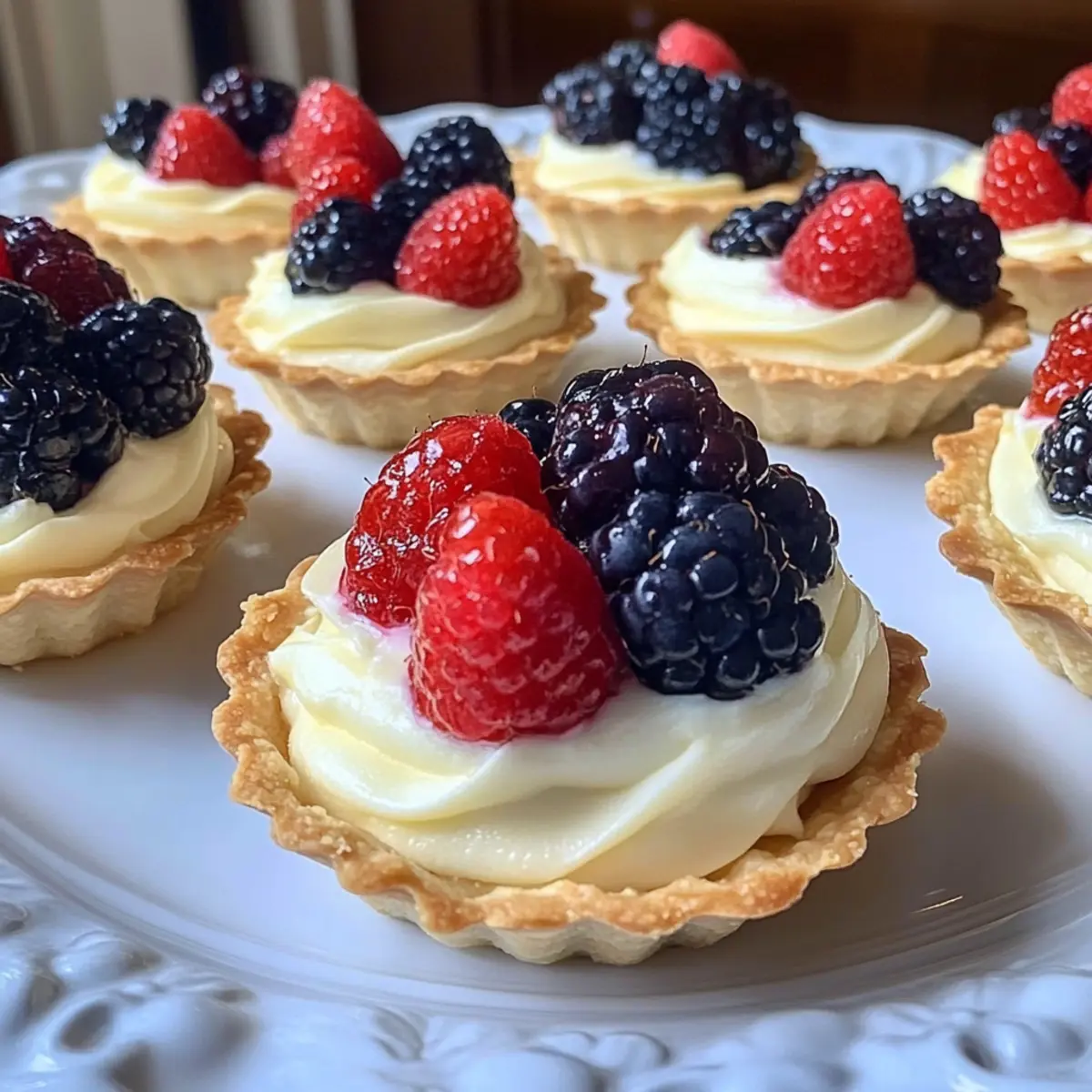 7. Refrigerate filled tartlets for at least an hour. Garnish with fresh berries before serving.