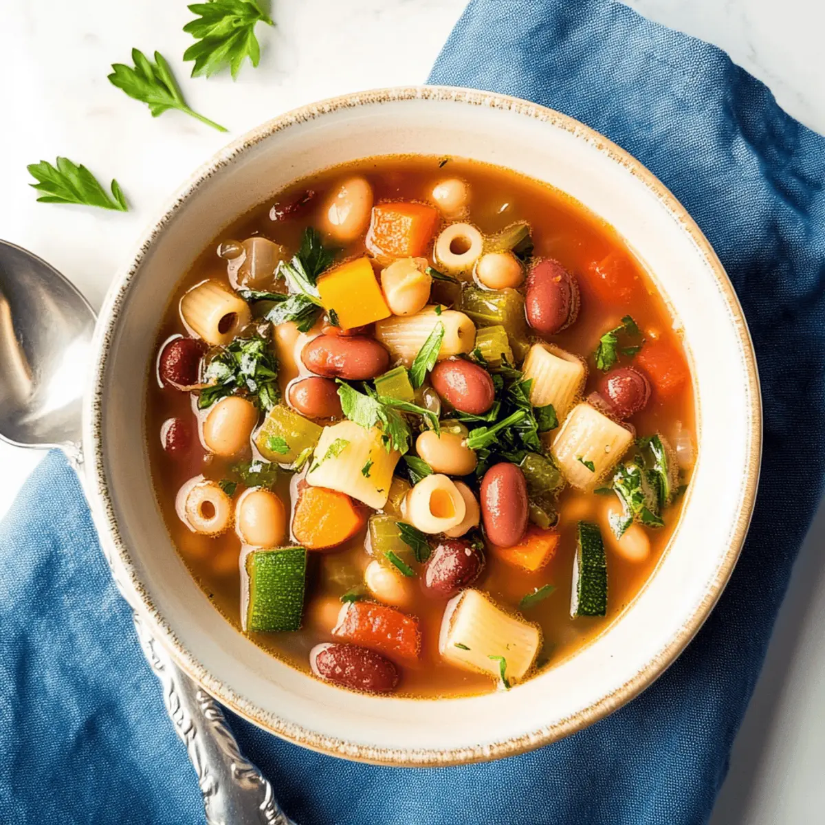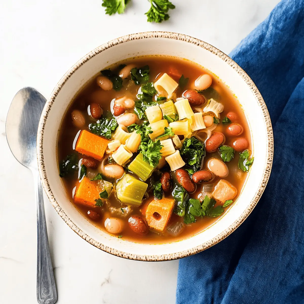 Enjoy a comforting bowl of Hearty Winter Minestrone packed with vibrant veggies and nutritious beans, perfect for cold winter days.